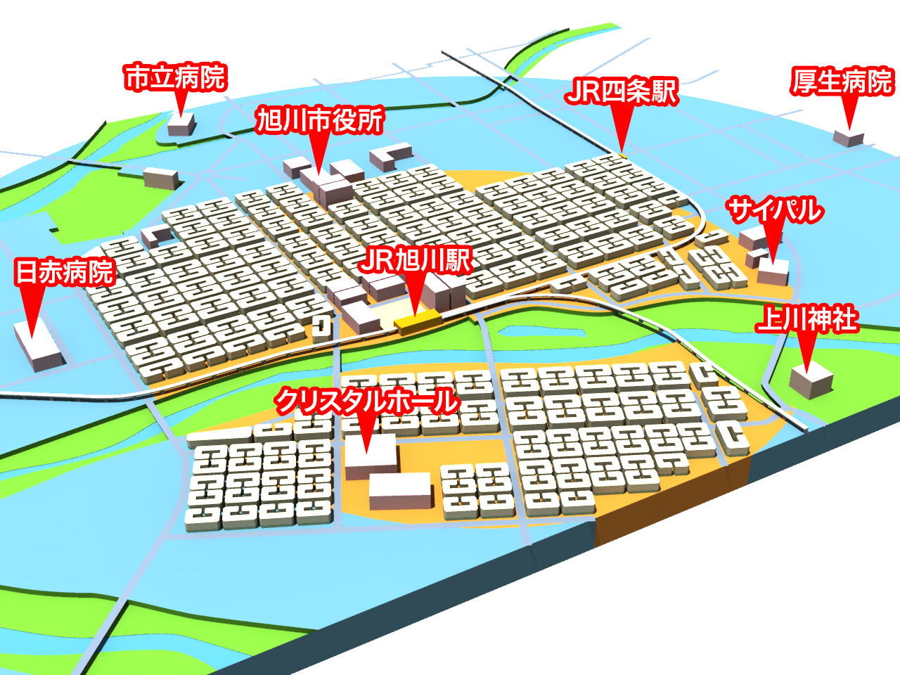 追記 > 旭川をヨーロッパの主要都市のような構成にした場合をCGで作成しました。